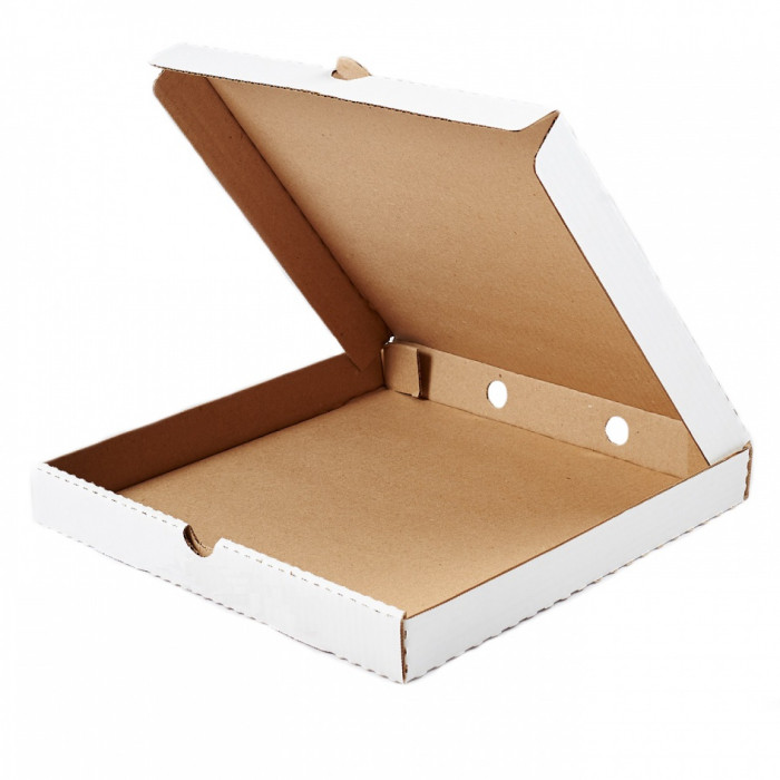 В качестве основного материала используется качественный мелованный трехслойный гофрокартон повышенной плотности, жиро- тепло- и влагостойкий, то есть не размокает под действием жира и конденсата. Картон является натуральным и безопасным экологически чистым материалом, который не включает в себя токсичные примеси, пригоден для упаковки продуктов питания. Конструкция коробки стандартная квадратная, с откидной крышкой и отверстиями в боковой стенке для вентиляции. Коробки для пиццы самосборные, имеют перфорации по линиям сгиба, легко собираются и хорошо держат форму в собранном виде. В пиццерии они поставляются в виде заготовок в плоском виде. Превратить такую заготовку в коробку для пиццы займет не больше минуты.